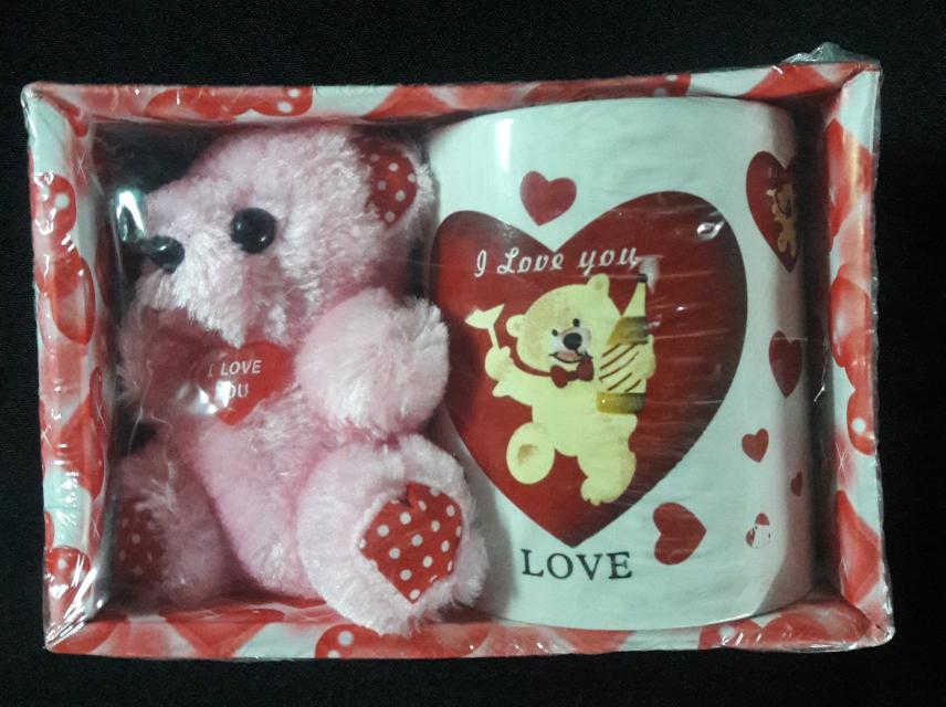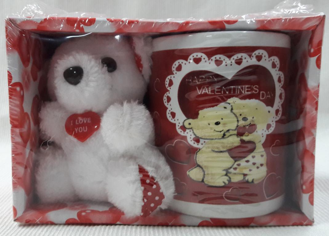 Regalo para San Valentín Oso de peluche con una taza en caja.